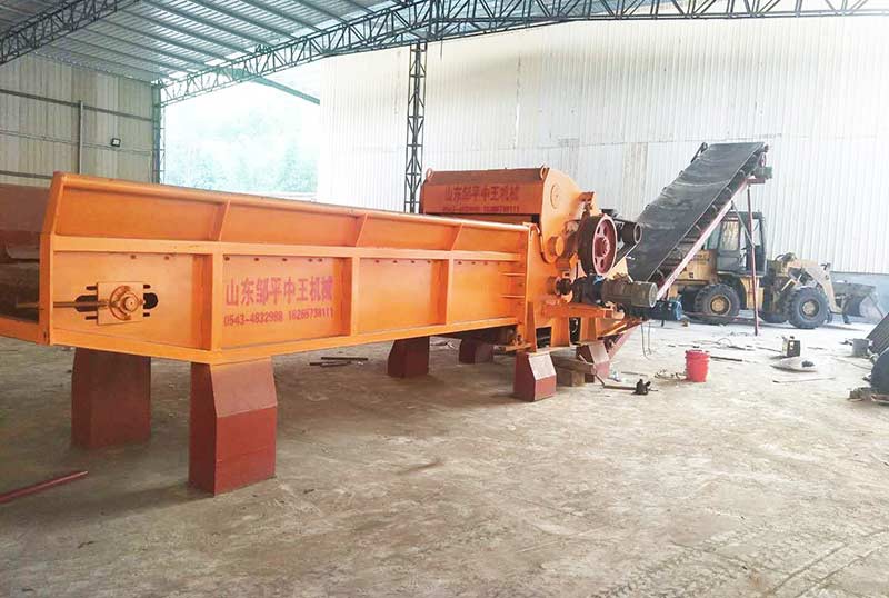 綜合破碎機(jī)是將所投入的木材質(zhì)破碎而制造塊狀的機(jī)械,綜合破碎機(jī)設(shè)有行進(jìn)裝置的車體、被設(shè)于該車體的一端側(cè)的將木材粉碎而形成木材的旋轉(zhuǎn)式破碎裝置、設(shè)于該旋轉(zhuǎn)式破碎裝置的上部的翼片式供給裝置、被從旋轉(zhuǎn)式破碎裝置的下部向車體的行進(jìn)方向另一端側(cè)延伸地設(shè)置的將由旋轉(zhuǎn)式破碎裝置破碎了的木材搬出而向外部排出的搬出裝置、被配置于旋轉(zhuǎn)式破碎裝置及搬出裝置之間的驅(qū)動(dòng)行進(jìn)裝置,旋轉(zhuǎn)式破碎裝置、翼片式供給裝置及搬出裝置的驅(qū)動(dòng)源的驅(qū)動(dòng)裝置。